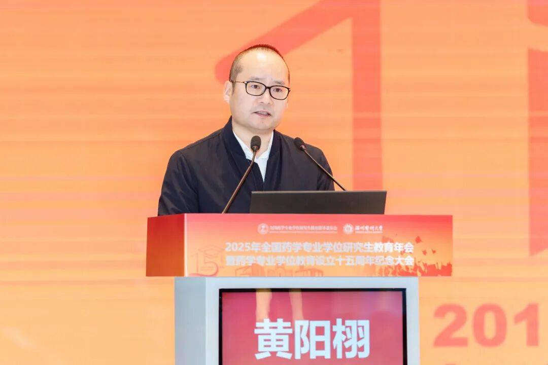 黄阳栩强调,温州医科大学作为温州高等教育金名片,其药学、眼视光学、临床医学等学科实力雄厚。温州市全力支持温医大发展药学专业学位研究生教育,将其视为推动生物医药产业升级的关键抓手,通过共建中国基因药谷,启动“生长因子之城”建设等举措,构建起“政产学研医”协同的高层次药学人才培养体系,为产业发展持续注入新动力。他表示,本次大会为交流互鉴、探索药学人才培养新路径提供了宝贵平台,温州将借此契机,与各方共同为推动全国药学专业学位研究生教育改革先行探路、贡献力量。